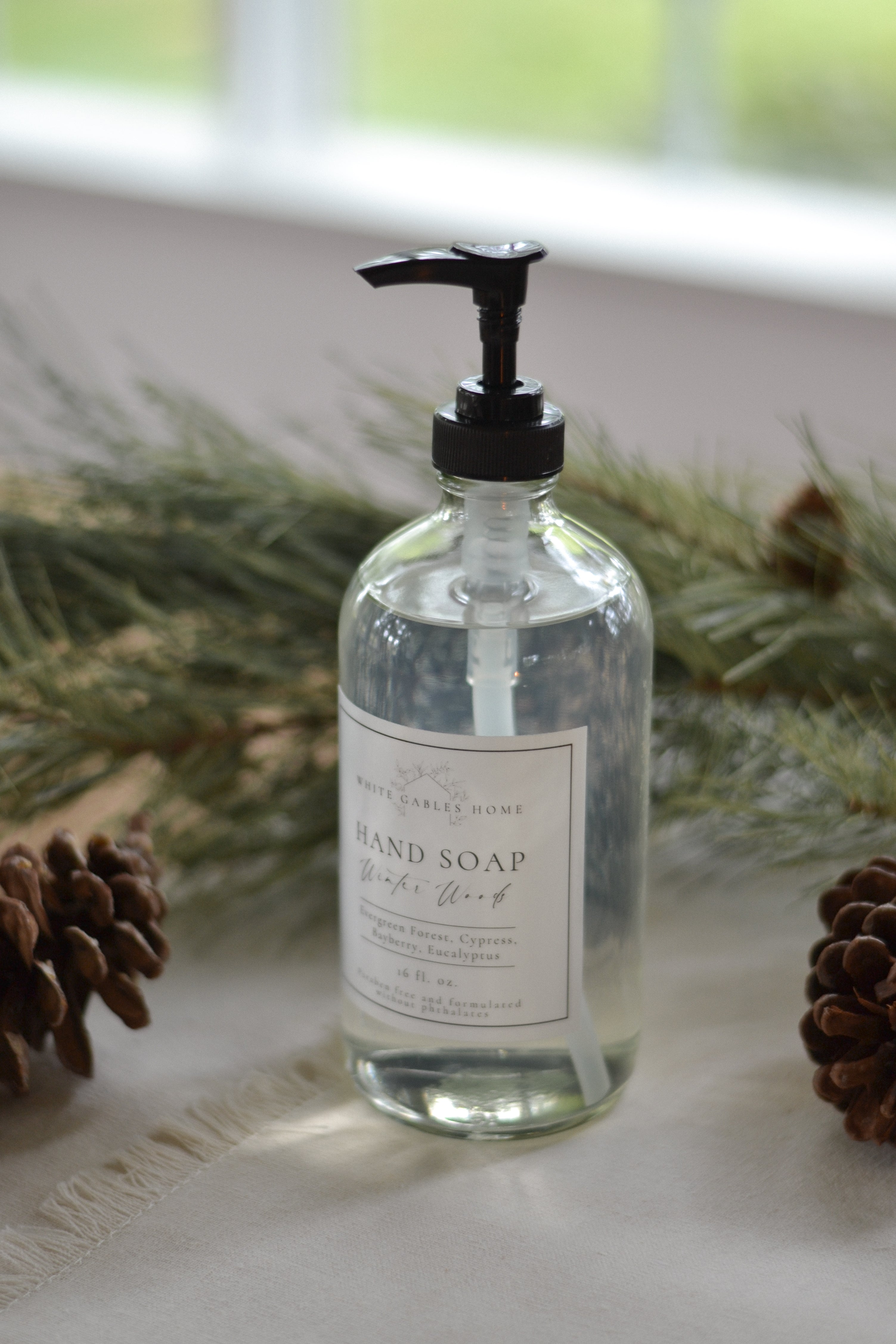 Bring the ambiance of an evergreen forest into your home with our Winter Woods hand soap. This fresh scent opens with eucalyptus and has notes of cypress, moss, and bayberry.
