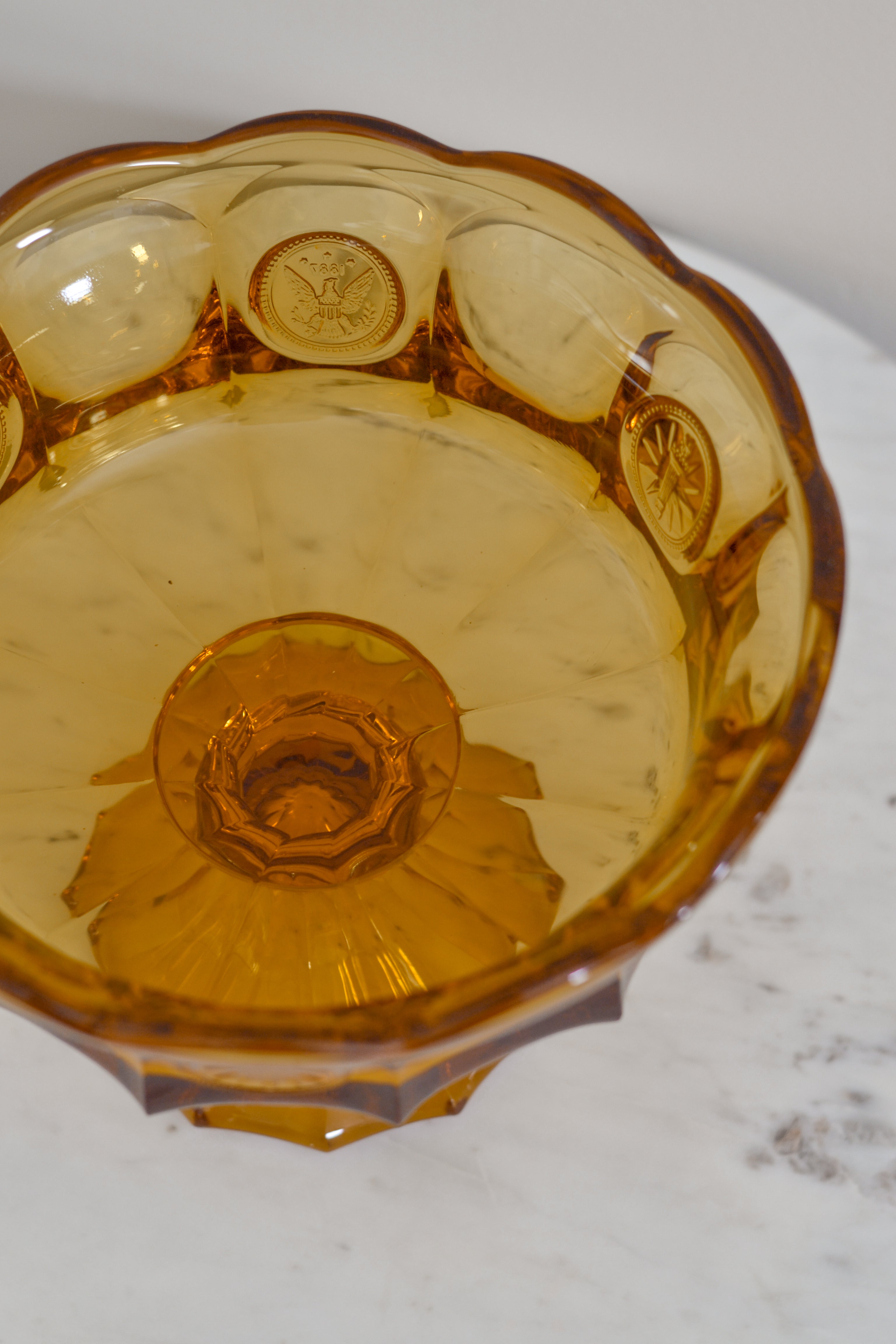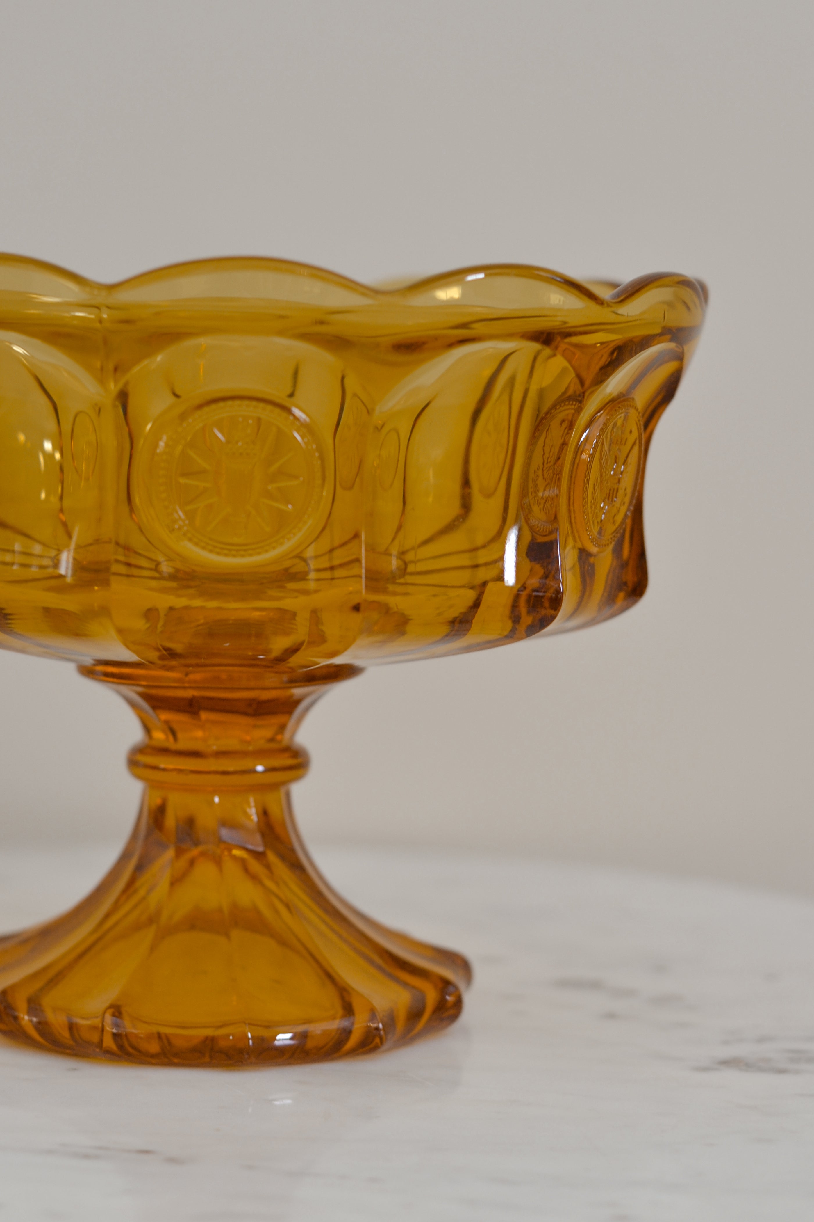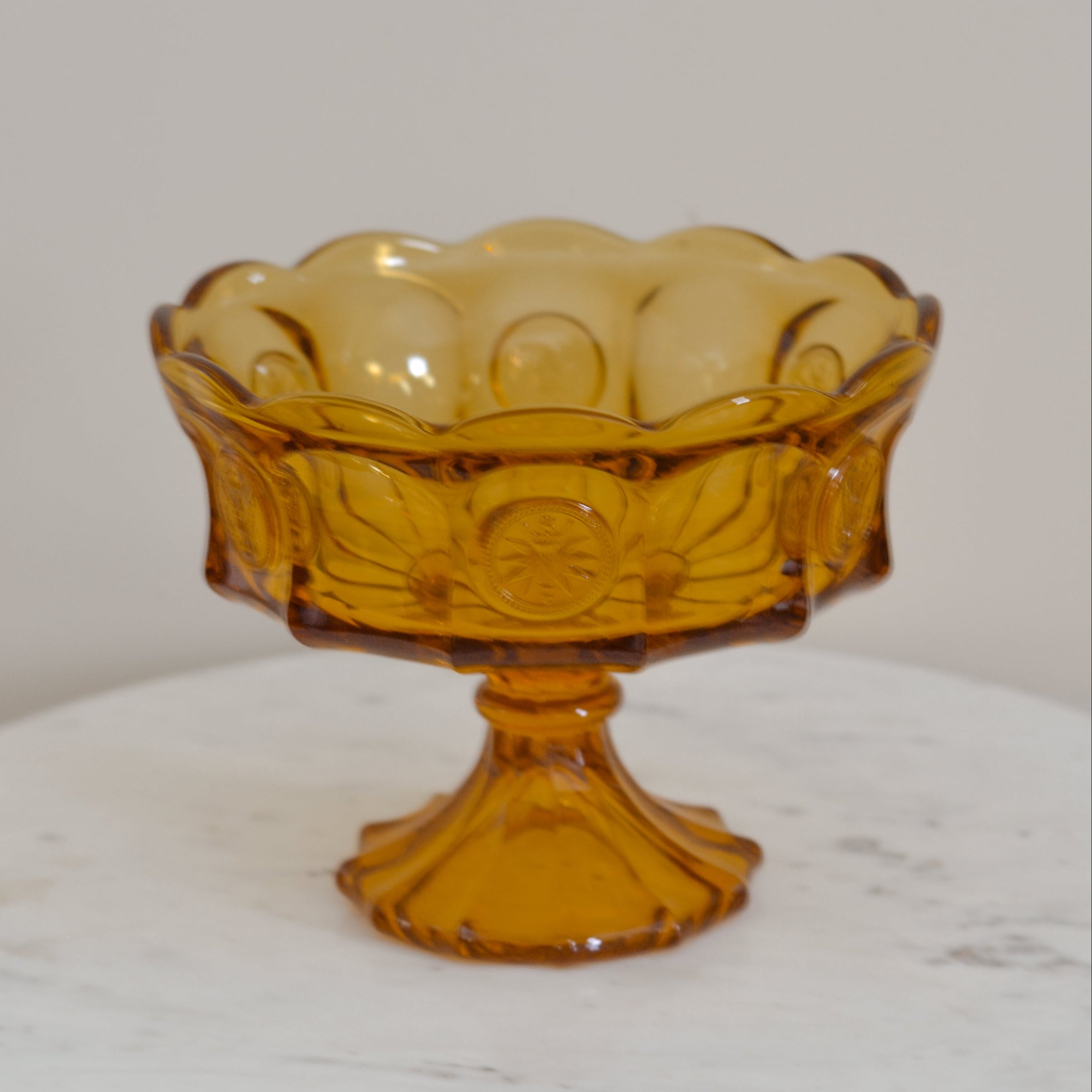 Vintage Amber Glass Pedestal Serving Dish