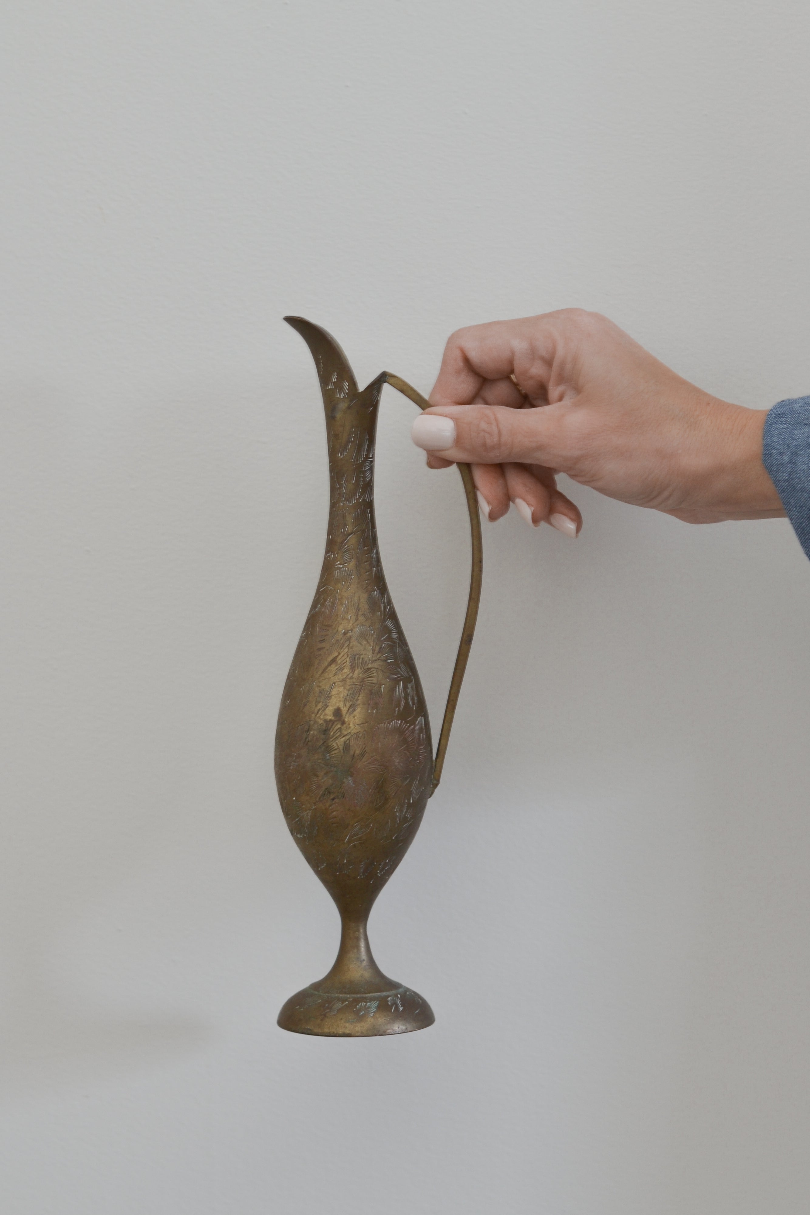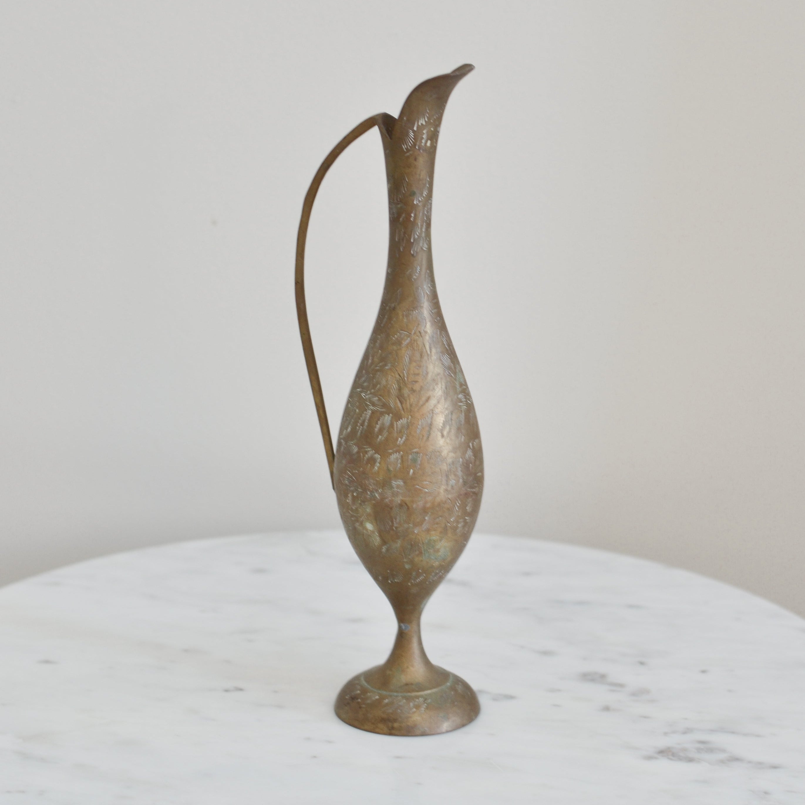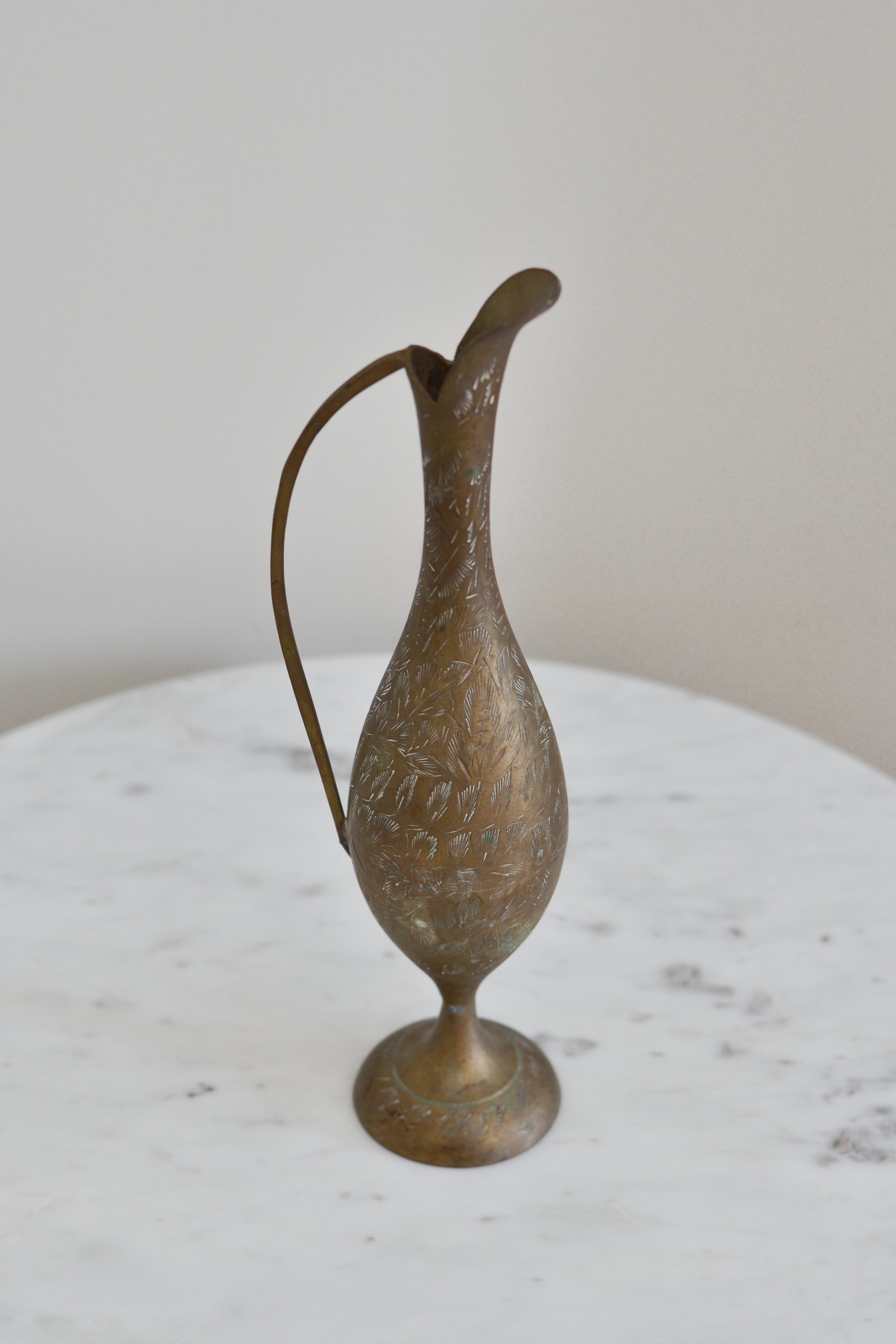 Vintage Etched Brass Pitcher