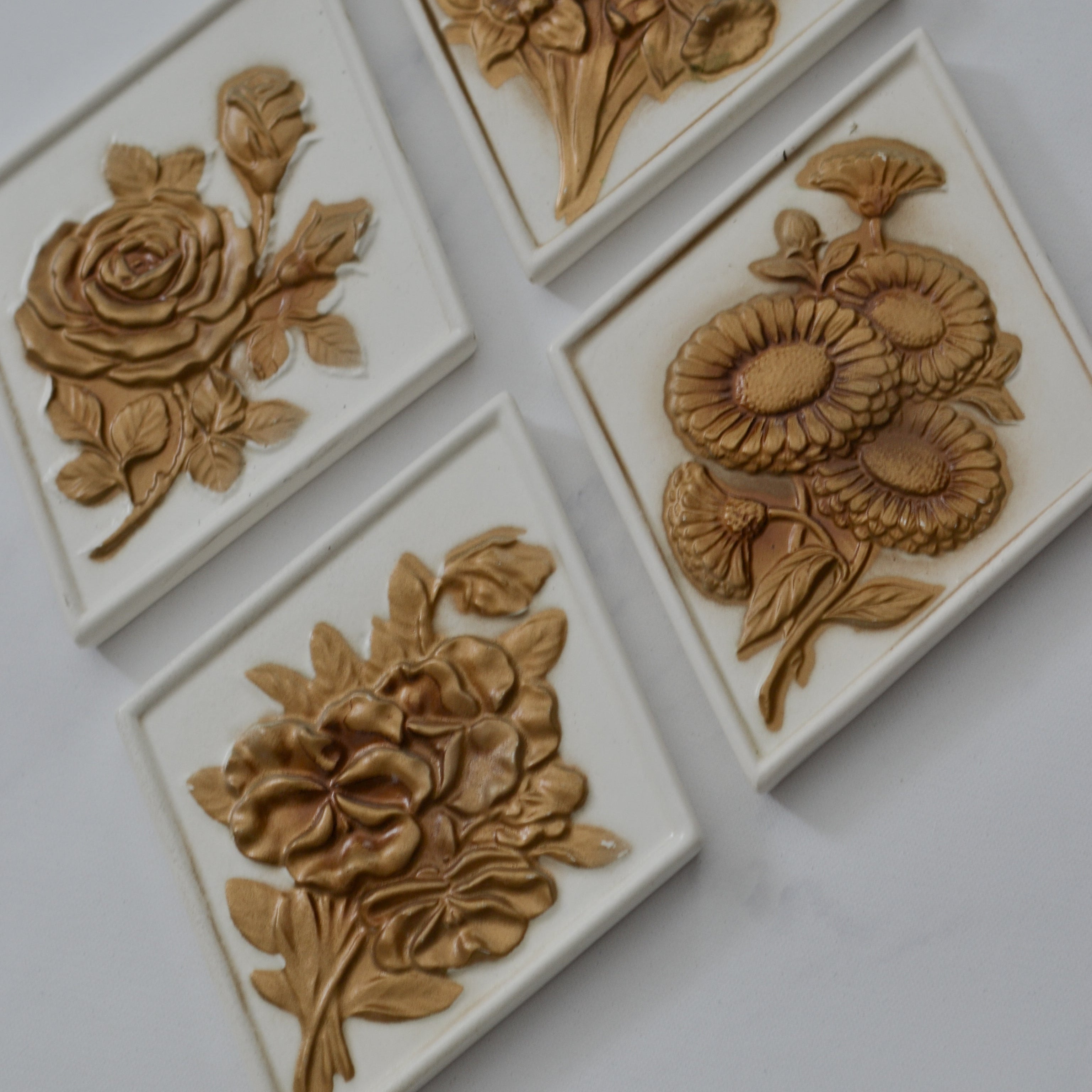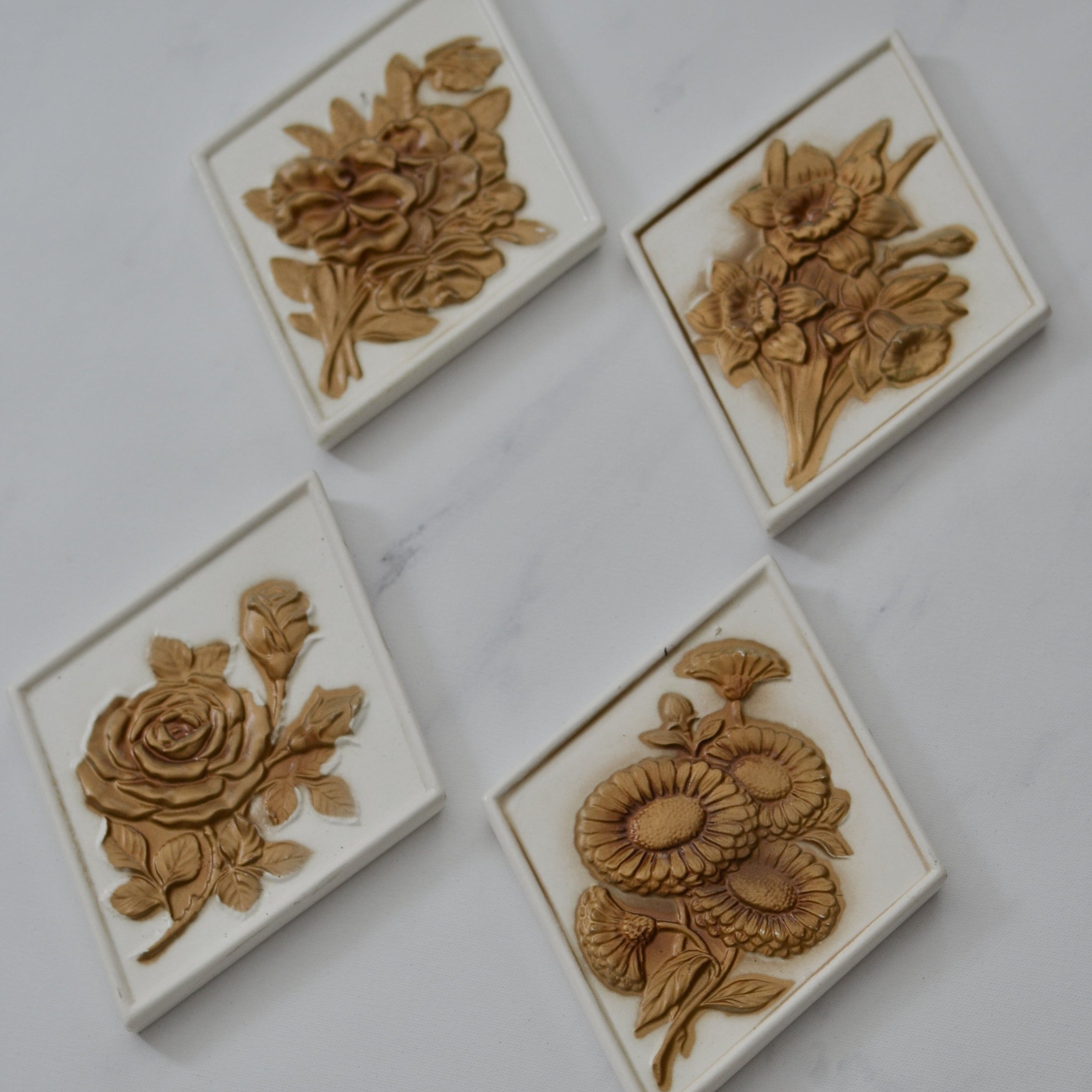 Set Of 4 Vintage Ceramic Floral Art Pieces