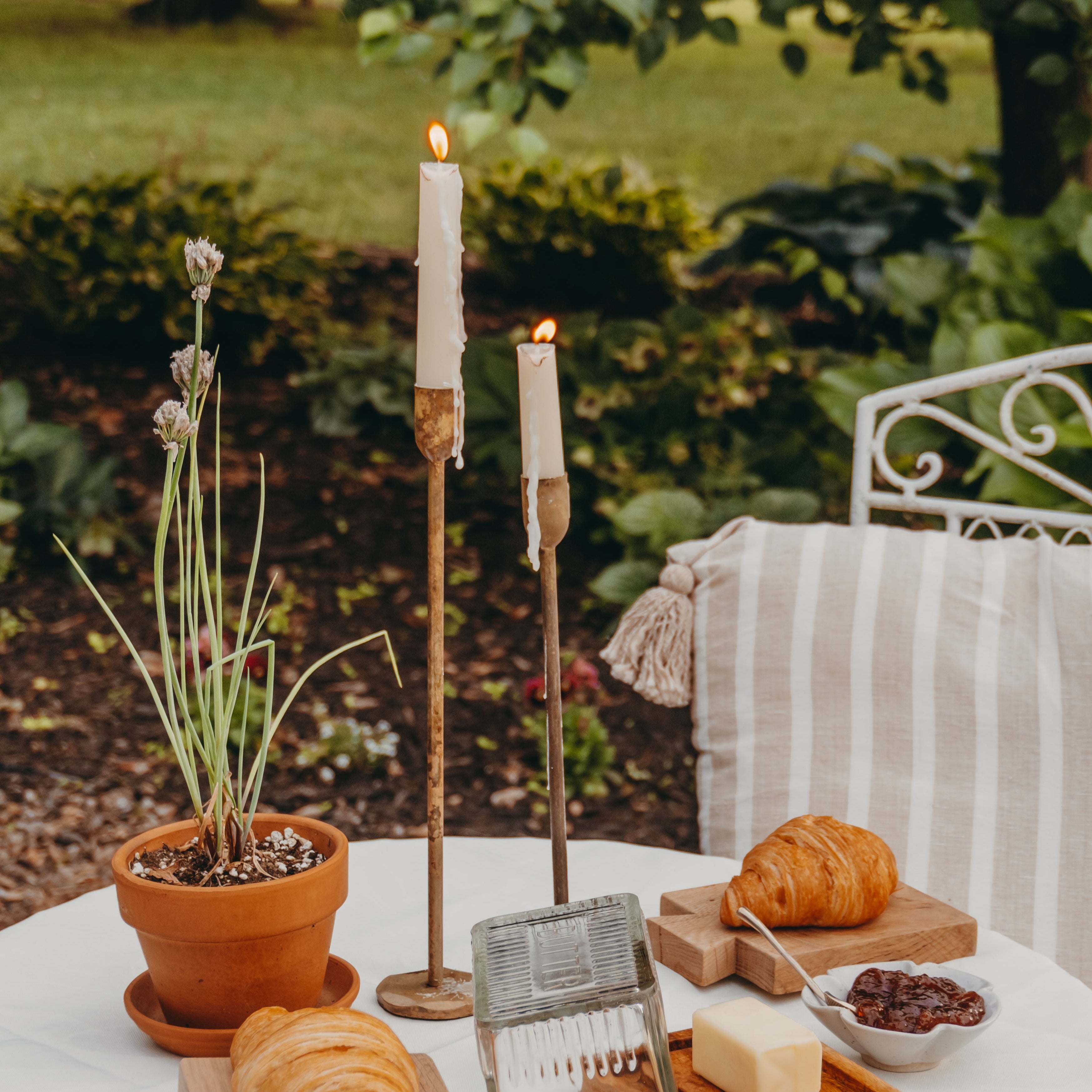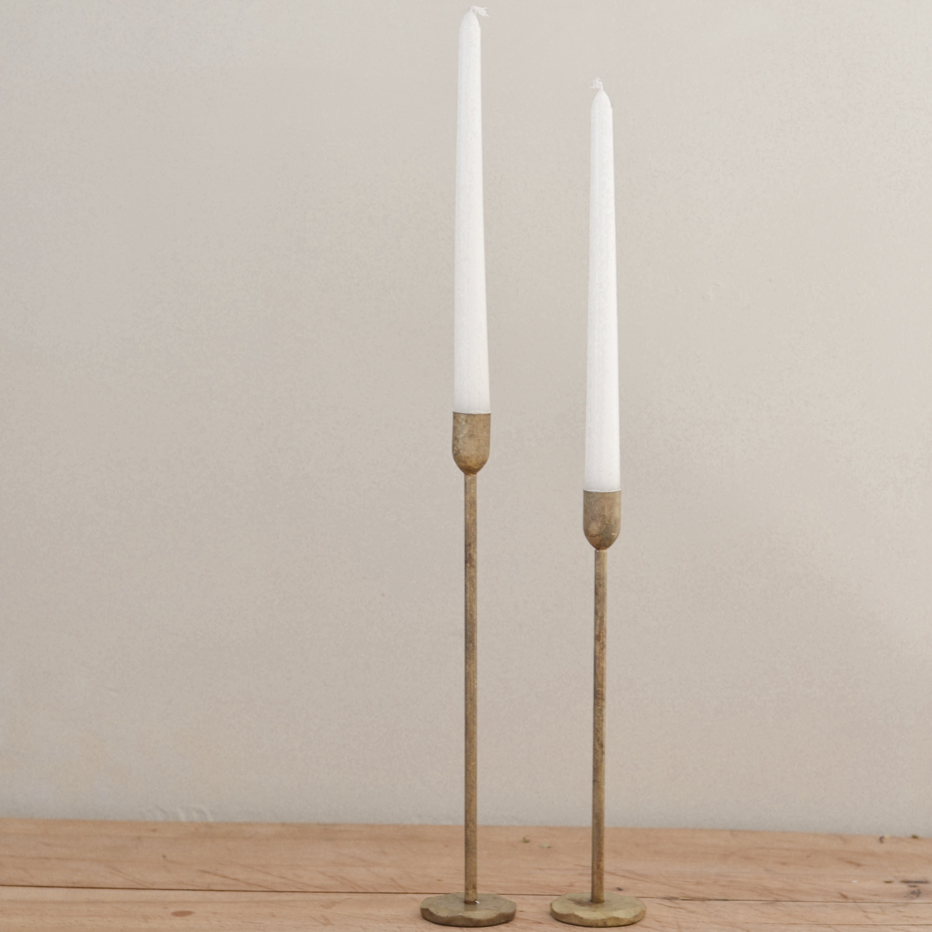 Our aged brass candle holders bring a timeless elegance and sophisticated charm that make them perfect for setting the mood, whether for a quiet evening or a special occasion.
