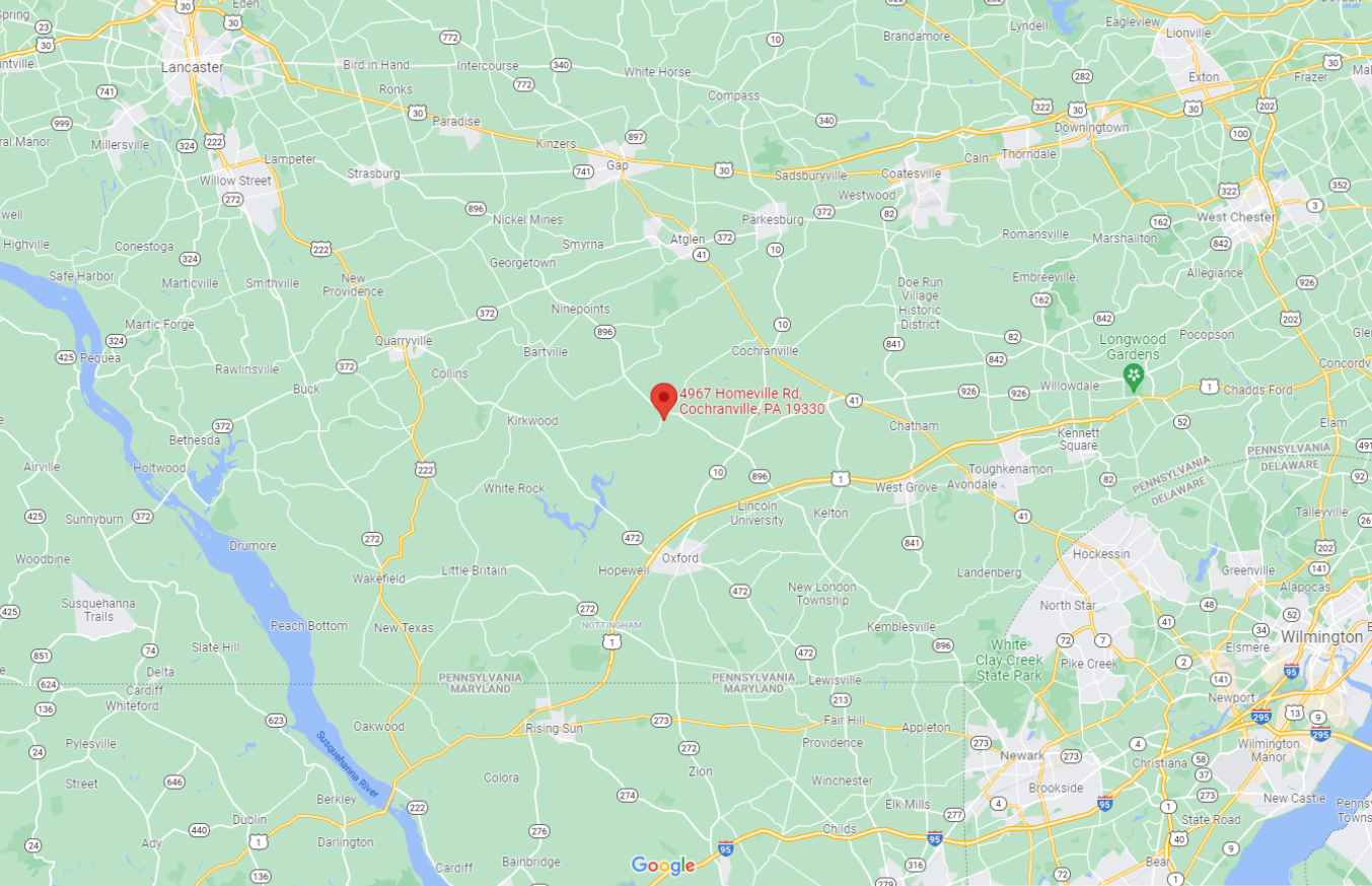 Address: 4967 Homeville Rd., Cochranville, PA 19330
