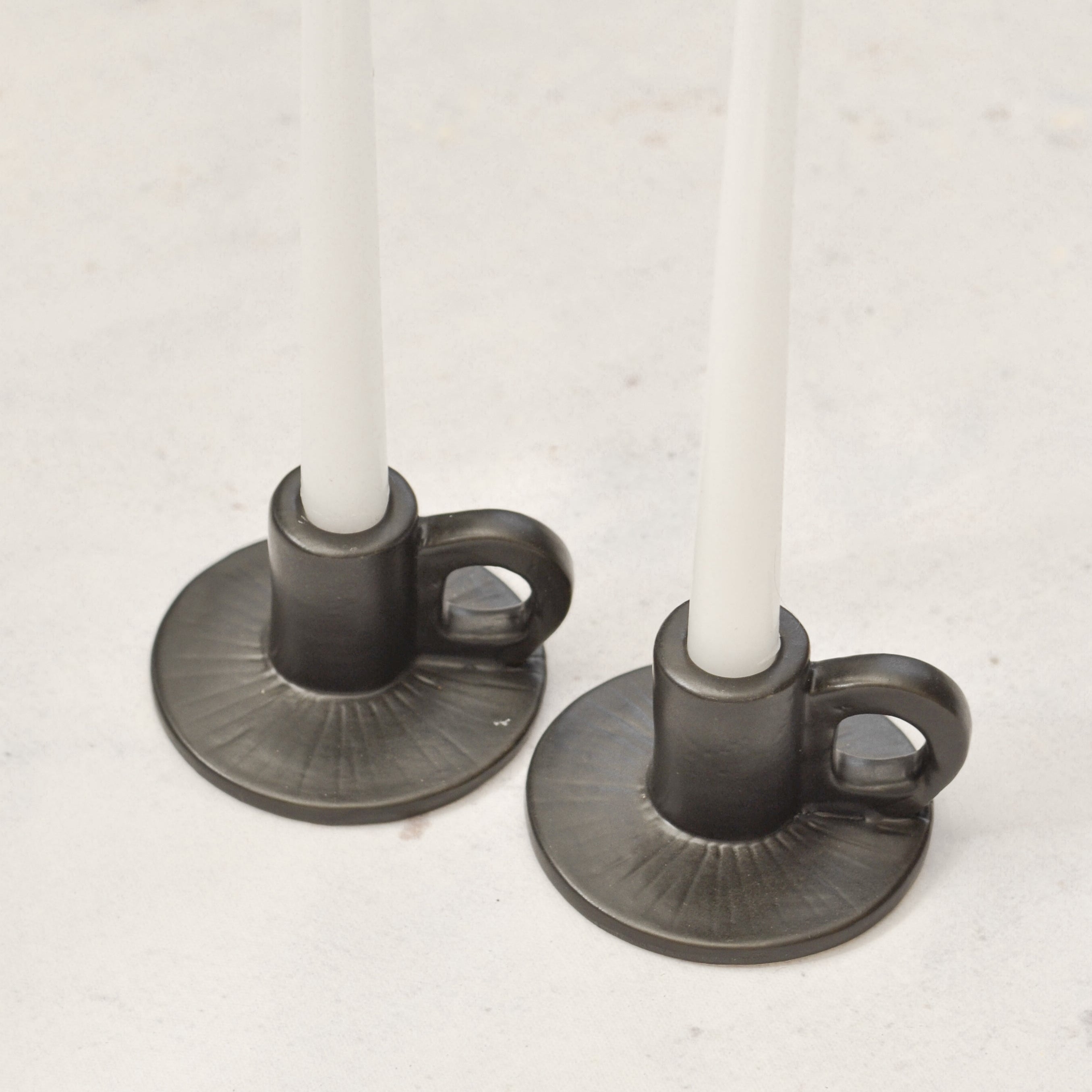 Sleek and sculptural, the Eclipse Taper Candle Holder brings a bold yet understated elegance to any space. Crafted from ceramic with a smooth matte black finish, its abstract form creates a striking display.