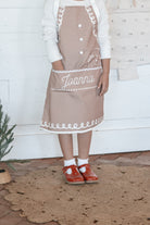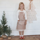 Make holiday baking extra sweet with this personalized Christmas apron for kids! Featuring an adorable gingerbread design in neutral colors, this apron is the perfect outfit for your little helper during cookie decorating, gingerbread house building, or Christmas dinner prep.